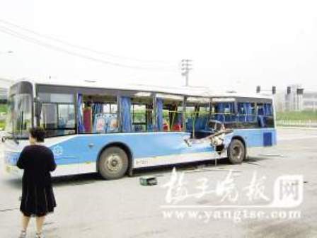小徐是南京郵電大學(xué)大一的新生,昨天上午10點(diǎn)多鐘的時(shí)候,他剛從學(xué)校門口出來(lái),就上了這輛97路公交車。車上的人并不多,后面還有位置,小徐便找了一個(gè)靠門的位置坐了下來(lái)。公交車在駛離南京郵電大學(xué)公交站臺(tái)后,繼續(xù)向南京財(cái)經(jīng)大學(xué)方向行駛,在通過(guò)兩所大學(xué)中間的一處十字路口的時(shí)候,一輛大卡車筆直地向公交車的中部撞來(lái)!斑选钡囊宦暎ㄜ嚨淖筮呠囶^撞進(jìn)了公交車的中部偏后方。乘客瞬間從座位上被撞到了走道中央,地面上全是碎玻璃碴,不少乘客滿臉都是血,小徐的嘴巴被碎玻璃碴劃傷。
