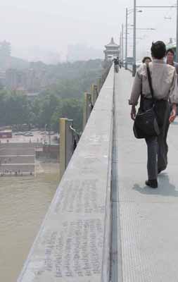 用毛筆寫下愛情表白,用小刀刻下游覽感受,本來很浪漫的情景,卻不和諧地出現(xiàn)在長江大橋護(hù)欄上。