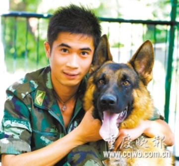 “坐下”、“起”、“定”、“握手”…… 剛走進(jìn)黑盾警犬培訓(xùn)學(xué)校,就看見(jiàn)身穿迷彩服的唐冬正在訓(xùn)練一條小型德國(guó)牧羊犬。帥氣的唐冬是學(xué)校里專(zhuān)門(mén)訓(xùn)練“高材生”的“大學(xué)教授”,2005年從北京軍區(qū)軍犬基地退役后,做訓(xùn)導(dǎo)師已經(jīng)四年了。如今,24歲的唐冬每月能有3500元左右的薪酬。