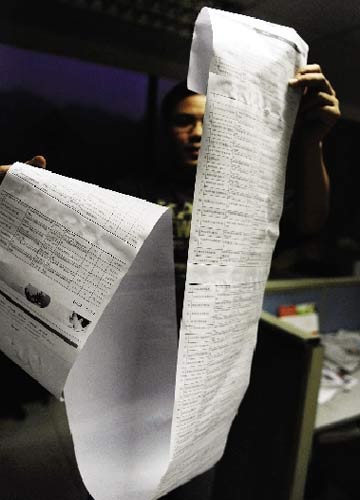 “湘U80001”違法記錄打印出來后,紙張長(zhǎng)度超過1.75米;