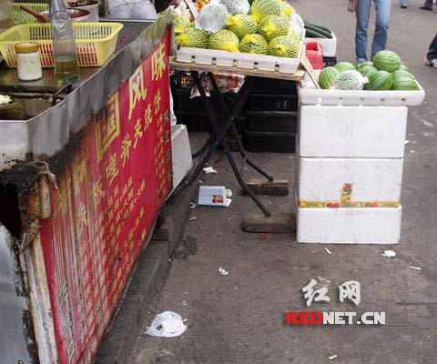 記者再去采訪時(shí),發(fā)現(xiàn)兩家店面的中間地帶,仍然擺放兩壘西瓜:一壘西瓜擺放在放桌上;緊挨著還有一壘白色泡沫盒疊起來的西瓜,仍有逼近路中央的趨勢。記者問到被砸壞的工具和被砸掉的雞蛋、果醬、辣椒等原料的賠償問題時(shí),包父嘆了口氣說:“沒有賠償,大家鄰居一場,這些也就算了,但是心里還是有個(gè)小要求,希望水果店店主能把隔在中間的西瓜挪開些,方便大家走路!