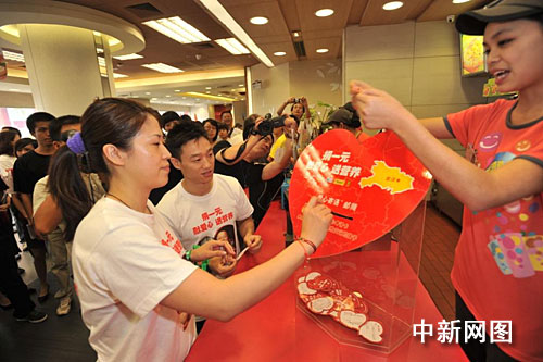 長跑活動結束后,楊威和高崚一起來到附近開設募捐箱的肯德基餐廳,帶頭捐款,并帶動了眾多市民加入該行列。該項募捐活動自今日起將持續(xù)兩周。