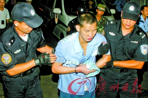 杜秋發(fā):沒有。過去我們從審訊他的同伙中知道成瑞龍雖然六親不認(rèn),但心里還是牽掛自己的兒子的,當(dāng)我們問他有什么要求時(shí),他回答說:“我最關(guān)心我仔,希望能見到他!蔽耶(dāng)時(shí)就說:“等回到佛山,他們會(huì)盡量安排你們見面的,而且我們看到你兒子了,長(zhǎng)得很高大很帥!彼那榫w很快就恢復(fù)平靜,對(duì)殺害佛山民警案件供認(rèn)不諱,后來(lái)一路押解回來(lái)也很順利。