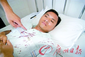 昨日,記者在化州人民醫(yī)院外二科見到了正在這里療傷的受傷教師。其中一名黃老師告訴記者,當時他與李老師等人負責在校門口值守,突然聽到李老師“你們想干什么?”的喊聲后,發(fā)現(xiàn)歹徒正揮棍朝李老師猛打,他即沖上去試圖阻止,結果頭部被打了一棍而昏倒地上。