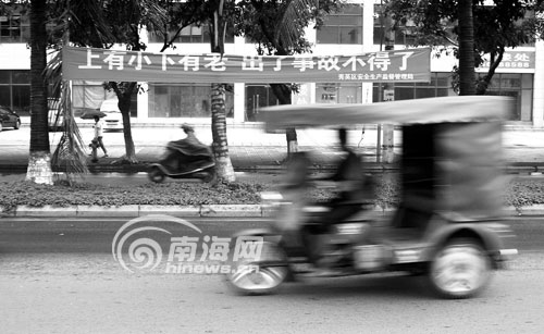 俗話說“上有老,下有小”來形容家里面上面有年邁的老人,膝下又有小孩。而在海口秀英西站附近,由秀英區(qū)安全生產(chǎn)監(jiān)督管理局掛著的一安全橫幅,卻是“上有小,下有老 出了事故不得了”。從該處經(jīng)過的市民王女士向本報(bào)打來熱線,想請(qǐng)相關(guān)部門的負(fù)責(zé)人將橫幅及時(shí)更正,免得誤導(dǎo)市民。(南國(guó)都市報(bào) 劉孫謀)
