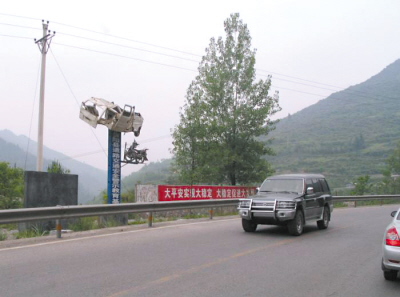在國(guó)道一旁,一部只剩癟形外殼的汽車(chē)被高懸在近20米的半空中,令過(guò)往此地的司機(jī)無(wú)不瞠目結(jié)舌。近日,被稱(chēng)之為“最牛交通安全警示教育基地”的照片出現(xiàn)在大渝網(wǎng),其極富創(chuàng)意的宣傳方式讓眾多網(wǎng)友拍手稱(chēng)贊。