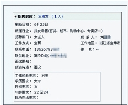 記者注意到,湯云在招聘網(wǎng)上留著的是朋友的名字和自己的號碼,“主要是感覺有點害羞。”湯云說。