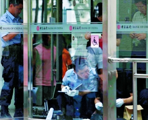 事發(fā)中國銀行位于北科大籃球場西側,高兩層,分為對私業(yè)務區(qū)和基金業(yè)務區(qū)。昨日中午12時10分許,顧客王明(化名)進入該行準備提款。“三排座位上坐著四五個顧客,兩個開放的銀行窗口前各有人在辦業(yè)務!蓖趺髡f。