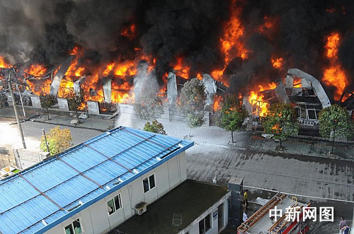 中新網(wǎng)溫州7月19日電(記者 江耘 通訊員 徐行號(hào) 姜嬋娟 劉榮平) 2009年7月19日10時(shí)55分許,浙江溫州龍灣區(qū)農(nóng)業(yè)開發(fā)區(qū)文匯路19號(hào)的愛好筆業(yè)倉(cāng)庫(kù)發(fā)生火災(zāi)。記者發(fā)稿時(shí),大火已經(jīng)燒了7個(gè)小時(shí),過火面積約達(dá)3000平方米,200余名消防官兵依舊無法徹底降伏火魔。