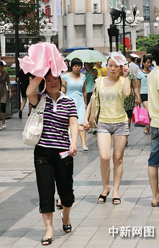 太陽(yáng)仍在繼續(xù)發(fā)威,“火爐”越燒越旺。記者看到,在公交車(chē)站等車(chē)的乘客還未上車(chē)就已汗流浹背,街上往來(lái)的美女也“清涼”上陣。正午時(shí)分,活躍在重慶大街小巷的商販們更是難覓蹤影。