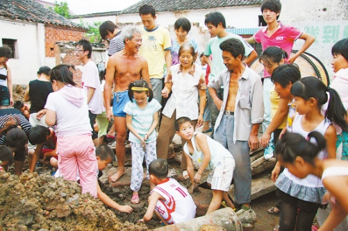 埋著銀元的泥土是來自樟三村中間的一處舊宅基地內(nèi),所以當(dāng)記者趕到那里時,發(fā)現(xiàn)約100平方米的宅基地早被200多個村民堵得嚴(yán)嚴(yán)實(shí)實(shí),個個滿身泥污,掘地尋寶。