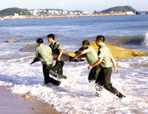 16時(shí)40分左右,南澳縣云澳邊防派出所官兵和漁政人員趕到海豚擱淺的云澳赤石灣,只見(jiàn)烈日之下,四只大海豚正拼命用尾鰭拍打沙灘,洶涌的海浪不斷將海豚沖向礁石,致使海豚渾身傷痕累累,情況危急。海豚體長(zhǎng)均超過(guò)兩米,重逾100公斤,最大的一只體重達(dá)300公斤。