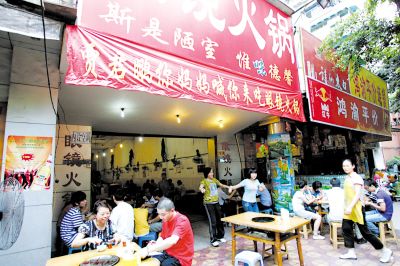 昨天下午,記者根據(jù)該帖,在江北建北八支路找到了這家火鍋店,據(jù)該店店員小王介紹,橫幅掛于一周前,是店老板掛上去的,但現(xiàn)在老板去外地出差了。她說,她也不知道這則標語是什么意思,只是發(fā)現(xiàn)這句標語掛上去后,許多來吃火鍋的人,總喜歡指著標語哈哈大笑。“賈君鵬可能是我們老板的朋友吧!绷硪晃粏T工如是告訴記者!