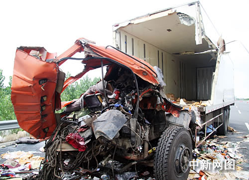 中新網(wǎng)鹽城八月六日電 (于從文 童盛)今天清晨四時許,沿海高速鹽城射陽段二〇二處發(fā)生一起貨車追尾事故,一輛車牌號為魯K二四七五六的大型冷藏車與前方車牌號為遼H九五〇七掛的大型貨車追尾相撞,導致后方冷藏車內(nèi)兩人當場死亡,前方貨車內(nèi)一人送往醫(yī)院后搶救無效死亡,另一人受輕微傷。