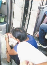 昨日下午,—位身著藍(lán)上衣、黑色短褲、戴著—副眼鏡的中年婦女,在洪山廣埠屯站上了—輛728路公汽,—上車就開始哭天喊地:“謝謝大家,謝謝大家,救救我媽媽吧,她要死了,沒錢看病,求求大家了!”女乞丐滿臉淚水,邊下跪邊磕頭,不少乘客紛紛解囊相助。