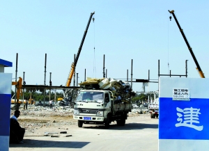 昨日10時(shí)許,朝陽(yáng)區(qū)天澤路東,曾經(jīng)繁華熱鬧的星吧路餐飲街被圍在新砌的白粉墻內(nèi),拆成了一片空曠地,僅剩的一棟2層小樓露出了鋼骨架,十幾名工人扛著大錘、電焊槍在作業(yè)。幾錘下去,一片墻體就塌了下去。一名工地施工人員證實(shí),這就是“老外釘子戶”的餐吧,“等了兩三個(gè)月,終于拆了!彼f,預(yù)計(jì)當(dāng)日可基本拆除。