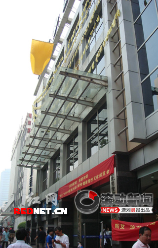 “一共懸掛了500條男性黃色內褲,其中一條最大的男性內褲,長4米,寬3米,特意在外面定做的,是長沙城最大的內褲!贬t(yī)院工作人員熊先生說,醫(yī)院在進行中國長沙內褲文化展,里面懸掛了一些宣傳圖片,懸掛500條男性內褲是他的主意。