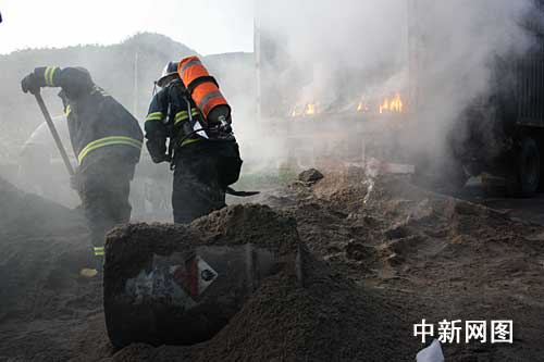 據(jù)了解,共有四桶黃磷泄漏并自燃。由于事故發(fā)生地并非人員聚居地,自燃黃磷數(shù)目不大且撲救及時,事故對空氣和水的影響較小,當?shù)匚唇M織下風口村民疏散。
