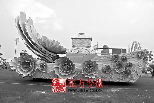 再過幾天,國內(nèi)外矚目的新中國成立60周年大閱兵和群眾游行,將在天安門廣場舉行,屆時,游行隊伍中的60輛彩車將一一經(jīng)過天安門。其中,一輛載著國之寶鼎、周圍遍布富貴牡丹的彩車,備受關(guān)注。這輛彩車,就是河南彩車——“花開盛世”。