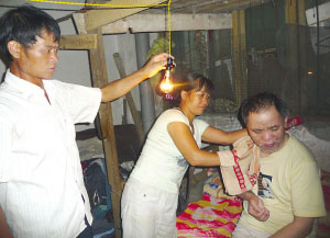 楊海英熱情地跟記者打招呼:“不好意思,家里又小又亂,你們隨便坐吧!币驗樯畹牟賱,這位才40歲的侗族婦女顯得比同齡人蒼老,但黝黑的臉上帶著淳樸的微笑,又給人樂觀堅強(qiáng)的感覺。