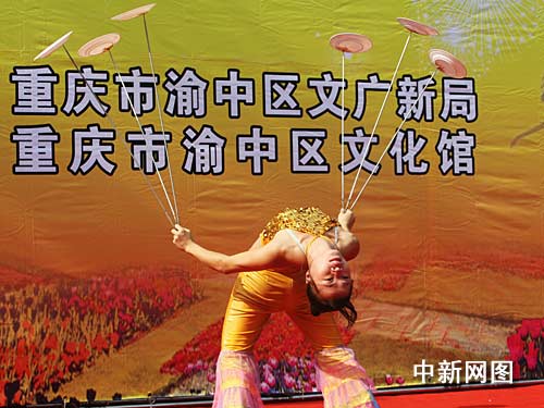 中新網(wǎng)重慶9月29日電 (孟幻 郭晉嘉)舞蹈、魔術(shù)、笛子獨(dú)奏……29日,來(lái)自重慶市渝中區(qū)12個(gè)街道的上百名外來(lái)務(wù)工人員獻(xiàn)藝,參加當(dāng)?shù)嘏e辦的外來(lái)務(wù)工人員才藝大賽,迎接新中國(guó)60華誕。