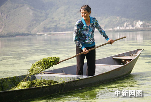 滇池是中國(guó)第六大淡水湖,也是目前中國(guó)污染最嚴(yán)重的內(nèi)陸淡水湖泊之一。從一九八八年開(kāi)始,無(wú)論風(fēng)吹日曬,每天早上七點(diǎn),昆明西山區(qū)福海街道辦事處新河社區(qū)巾幗打撈隊(duì)的隊(duì)員都會(huì)劃著船進(jìn)入滇池草海,打撈垃圾和水藻。