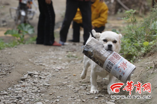 每天上午9時(shí),給李爺爺家送華商報(bào)的投遞員張躍進(jìn),會(huì)準(zhǔn)時(shí)到達(dá)位于西安市南郊的東三爻堡!皥(bào)紙來(lái)咧!”站在李爺爺家門(mén)前一段50多米長(zhǎng)的坡路下,張躍進(jìn)會(huì)扯著嗓子吆喝一句。幾秒鐘后,張躍進(jìn)和周圍的鄰居便會(huì)看到,一條黃白相間的小狗,從坡路上飛快地跑來(lái),用嘴叼起張躍進(jìn)遞來(lái)的報(bào)紙!翱烊!把報(bào)紙給爺爺!甭(tīng)了張躍進(jìn)的話,小狗花花扭身徑直跑到李爺爺跟前,把報(bào)紙交到老人手中。