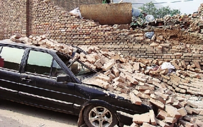 車主陳女士告訴記者,她和丈夫在附近居住,為方便外出辦公,他們前段時間買了一輛桑塔納轎車。由于周圍沒有停車場,無奈之下他們只好將車停在離家不遠(yuǎn)的巷道里。20日上午,她和丈夫出門辦事,快走到車跟前時,只聽到“轟”的一聲,轎車旁邊的一堵高墻突然倒塌,砸在轎車上,大量磚塊瞬間將轎車“掩埋”!懊控参叶及衍囃T谶@里,沒想到今天這么倒霉,讓墻把車給砸了!标惻繃@氣道。
