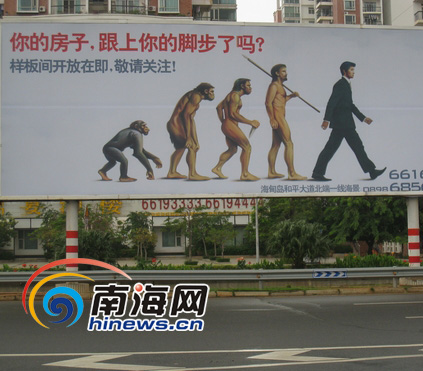 。êD希┖?诤5閸u某樓盤廣告內(nèi)容與人類進化掛鉤,看到該廣告的市民都覺得受了莫大的侮辱,認(rèn)為該廣告有辱公民道德風(fēng)尚,要求相關(guān)部門依法取締并查處。然而記者進一步調(diào)查發(fā)現(xiàn),該廣告已通過工商部門審批,核發(fā)了許可證,網(wǎng)友直指該廣告低俗。