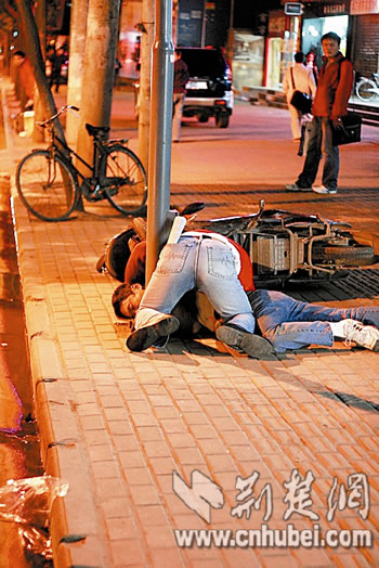公汽?咳就獾年惣覟痴竞,紅衣男子再次與司機(jī)理論起來(lái)。他將司機(jī)拉下車(chē),二人發(fā)生肢體沖突。扭打中,紅衣男子將司機(jī)按倒在地一頓毆打(如圖)。