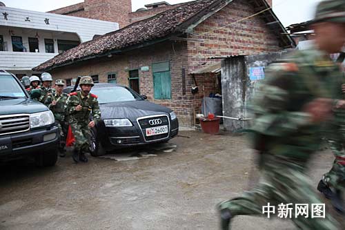 石順兵殺人后逃至一座方圓三平方公里、名為“大紅山”的荒山上藏匿。當日下午,河池市武警官兵、公安民警等四百多人集結在山上進行地毯式搜山。下午四點多,幾名武警發(fā)現山上一塊巖石下的草叢中竄出一人,其見到武警后又立即回竄,三名武警遂躍上前去。面對三個黑洞洞的槍口,石順兵舉起雙手說:“我投降!”