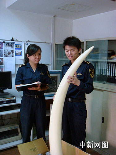 據(jù)透露,2009年10月26日,上海海關駐郵局辦事處關員小郭依照慣例對進口郵件的申報單進行審核。審單過程中,一件由日本郵寄進境、申報內(nèi)容為“非洲特色裝飾品,工藝品”的單子引起了她的注意。原來今年6月,海關就曾查獲一批由烏拉圭進境的象牙雕刻制品,其收件地址與這票貨物完全相同!小郭于是立即對可疑郵包進行了機檢。X光機下,關員觀察到一個類似象牙弧形狀的深色物體,打開扁長方形的盒狀包裹,關員發(fā)現(xiàn)里面塞有大量的報紙,報紙堆中藏有一根通體玉白,實心、表面微亮、未經(jīng)雕琢的象牙。