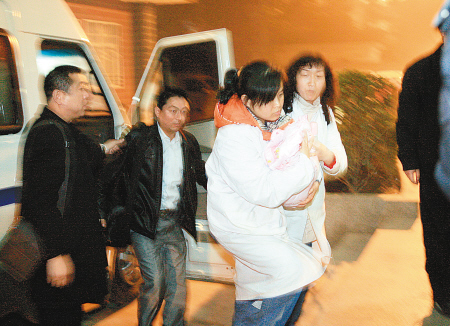 隨后,嚴(yán)小紅和屈娥娃上了警車,趕往醫(yī)院——他們迫不急待地想見孩子一面。 記者 王飛