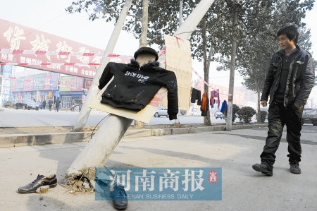 昨日,有網(wǎng)友將此線桿圖片發(fā)到了商報網(wǎng)上,在諸多跟帖中,有網(wǎng)友寫詩諷“線桿它爹”(附后)。(河南商報) (商報記者 梁辰)