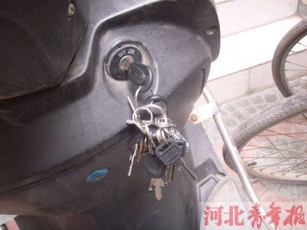 張先生大喊“抓賊”,結(jié)果對方扔下車便跑。張先生趕到車旁一看,發(fā)現(xiàn)正是自己的電動(dòng)車,車電源鎖上還插著一大串鑰匙。