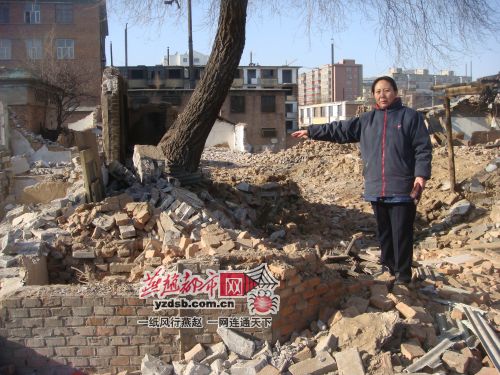 在還沒有簽定拆遷協(xié)議之前,張家口市退休女士民溫春梅的房子,被不明人士砸壞了門窗,派出所在查看現(xiàn)場后要求溫春梅去所里作筆錄,誰知等溫春梅從派出所回來后一看,這次房子竟然倒塌了一半,所有的家具都被埋了進去,而剩下的兩間也變成了危房。而當?shù)夭疬w辦對此的解釋竟然是:“在清理旁邊垃圾時不小心碰倒了”。11月23日,這樣的場景和解釋在張家口市橋西區(qū)戲劇性的上演。