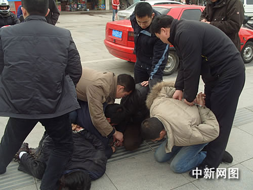 就在4名男子上車準(zhǔn)備發(fā)動(dòng)轎車的一剎那,5名民警突然猶如下山的猛虎,突然出現(xiàn)在可疑車輛兩側(cè),猛然打開(kāi)車門(mén),在逃犯剛明白的時(shí)候,他們已經(jīng)被民警拽到車外,按倒在地。“有兩個(gè)人還拼命反抗,不讓我們上銬子,我們告訴他們是警察,幾個(gè)人就老實(shí)了!”整個(gè)抓捕過(guò)程也就兩三分鐘時(shí)間,當(dāng)路過(guò)的市民明白過(guò)來(lái),情不自禁地為民警鼓起了掌。