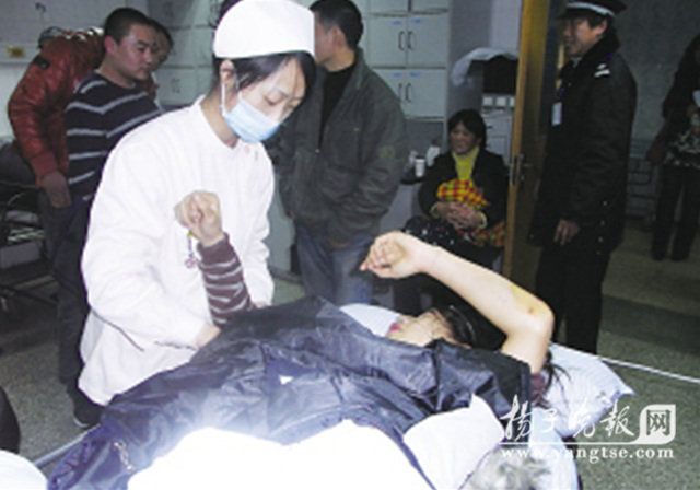 在中大醫(yī)院急診室,一女子拉著參與救人的兩位熱心女子,流著眼淚感謝她們。據(jù)她講,受傷的是其妹妹,叫朱貴娟,今年23歲,是一家婚紗店的攝影師。當(dāng)時(shí)她下班騎車回家,沒想到遭遇車禍。多虧好心市民幫忙,兩位大姐陪同妹妹來到醫(yī)院看傷,她們還墊付了1000多元醫(yī)藥費(fèi)。