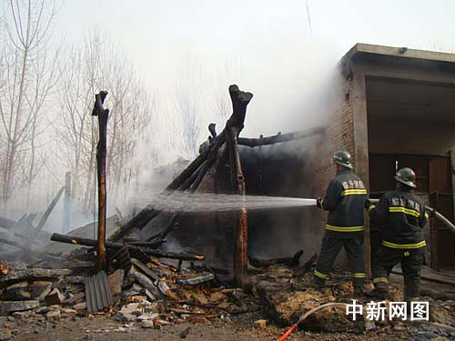 消防官兵到現(xiàn)場展開緊急滅火,經(jīng)過20幾分鐘救援,大火才終于撲滅。但因火勢較大木棚房易燃的木頭燒焦斷裂,磚墻倒塌。使整個木棚房坍塌一片。