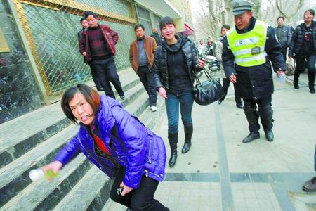 3分鐘后,交警二大隊(duì)民警趕到。在對(duì)違法司機(jī)進(jìn)行處罰時(shí),民警發(fā)現(xiàn)司機(jī)宿輝所駕駛的轎車(chē),登記的是南陽(yáng)市社旗縣晉莊鎮(zhèn)紀(jì)律檢查委員會(huì)所屬車(chē)輛。記者拍照時(shí),遭到一名短發(fā)女子阻攔。隨后,又有兩名黑衣女子上前,開(kāi)始搶奪本報(bào)攝影記者閆化莊的相機(jī),并當(dāng)街追打閆化莊,將他的手背抓爛。整個(gè)過(guò)程持續(xù)了十分鐘,一名DV觀察員拍攝追打過(guò)程時(shí),也遭到了這三名女子的圍攻和撕扯,在場(chǎng)交警上前制止,其中兩名女子又沖過(guò)來(lái)毆打記者。先期離開(kāi)的特巡警趕來(lái)制止,三名女子仍不愿罷手。