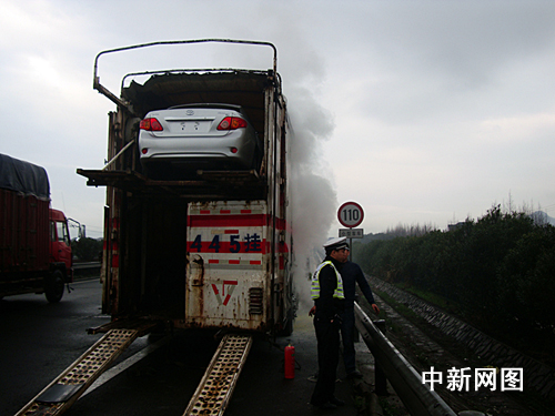 中新網(wǎng)寧波3月7日電(記者 何蔣勇 通訊員 樂其偉 歐陽峰)6日下午,一輛滿載著八輛豐田新車的半掛運輸車在甬臺溫高速寧波段因剎車抱死引發(fā)輪胎起火,幸虧高速交警、消防及過往群眾的及時有效處置,才使八輛豐田新車躲過了此次火險。