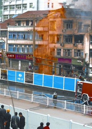 昨日被挖破的管道,就坐落在黃浦大街246號一棟4層樓的私房門前,該私房底層是三間臨街的門面,樓上住著兩戶人家還有兩位老人,眾人顧不得收拾家中財(cái)物趕緊往外撤。鄒姓房東告訴記者,該棟樓的一半財(cái)物基本都在大火中被燒毀,他一大家子人沒地方過夜,被安排到近旁的揚(yáng)子江飯店落腳。