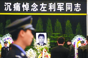 北京八寶山地區(qū)的天空似乎永遠是陰沉的,殯儀館門前也總是圍繞著送別親人的悲痛。今天(22日)上午,這種離情更加的讓人感動:北京市公安局領導班子全部出動,甘家口派出所的同事們安排好工作陸續(xù)前來,西釣魚臺社區(qū)居民聞訊自發(fā)趕到,他們都是為一個普通的社區(qū)民警送行,這是一個永遠笑瞇瞇的“小左”;這是一個質(zhì)樸而熱情的“左指導員”、“左師父”。3月20日的凌晨,41歲的北京海淀公安分局甘家口派出所社區(qū)民警左利軍猝死在派出所,今天上午,小左的遺體告別在八寶山舉行。