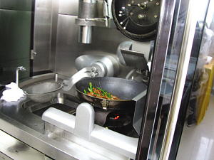 2006年10月,中國發(fā)明了世界第一臺中國菜肴烹飪機器人——“愛可”。由揚州大學(xué)旅游烹飪學(xué)院、上海交通大學(xué)機器人研究所和深圳繁興科技公司,歷時4年研制成功。揚大旅烹學(xué)院蔡麗婭副書記告訴記者,“愛可2.0”能迅速學(xué)習(xí)和掌握優(yōu)秀廚師的菜肴烹制技巧,“手藝”能和名廚比肩,具有完全自主知識產(chǎn)權(quán)。截至2009年12月,已擁有150多個發(fā)明專利。被中科院認定為“必將改變?nèi)祟惿罘绞降囊豁椫卮蟀l(fā)明!