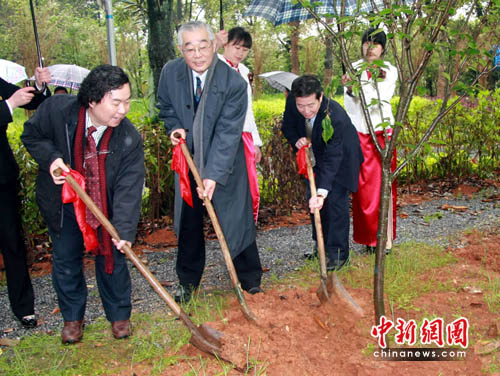 中新網(wǎng)長(zhǎng)沙4月14日電(鄧霞 劉柱)冒著瀟瀟春雨,10來名日本友人今天專程來到湖南涉外人員培訓(xùn)中心中日友好櫻花園,為這里新植的700株櫻花樹苗添土。據(jù)介紹,該櫻花園由日本育櫻會(huì)捐資興建。