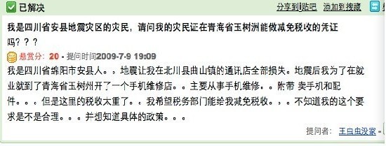 玉樹(shù)地震發(fā)生當(dāng)日,一位名叫“王蟲(chóng)蟲(chóng)沒(méi)家”的網(wǎng)友,因?yàn)樵谌ツ?月百度知道上發(fā)出的一個(gè)帖子被人重新翻起,而成了數(shù)萬(wàn)網(wǎng)友關(guān)注的焦點(diǎn)。這位網(wǎng)友曾經(jīng)在北川開(kāi)了一家手機(jī)維修店,5.12汶川大地震中北川被震毀,幸存下來(lái)的“王蟲(chóng)蟲(chóng)”在震后選擇到玉樹(shù)州重新創(chuàng)業(yè),并想開(kāi)一家手機(jī)維修店!巴跸x(chóng)蟲(chóng)”的這番遭遇,引起了網(wǎng)民的高度關(guān)注,“王蟲(chóng)蟲(chóng)”也被網(wǎng)友稱(chēng)為最悲情的人物。因?yàn)椤巴跸x(chóng)蟲(chóng)”最后一次上網(wǎng)登錄的時(shí)間已是地震一個(gè)月前了,他(她)能否再次躲過(guò)這一次天災(zāi),成了眾多網(wǎng)友關(guān)注的焦點(diǎn)。四川在線記者在到達(dá)玉樹(shù)后不久,想盡辦法找尋這位網(wǎng)友。