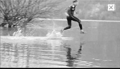 網(wǎng)上文章稱:“3名外國小伙在一個(gè)視頻里把中國武俠小說里的輕功 ‘水上漂’展現(xiàn)得淋漓盡致。視頻中,他們?cè)谄咸蜒酪粋(gè)湖上賽跑,在水面上奔跑了50多米后才落水。他們聲稱這是一種挑戰(zhàn)地心引力理論的新型極限運(yùn)動(dòng)。視頻上傳到某網(wǎng)站后,在短短兩周內(nèi)吸引了超過200多萬人次瀏覽。視頻看起來可信度極高,不少質(zhì)疑它是騙局的網(wǎng)友也不得不承認(rèn),它拍得很高明!