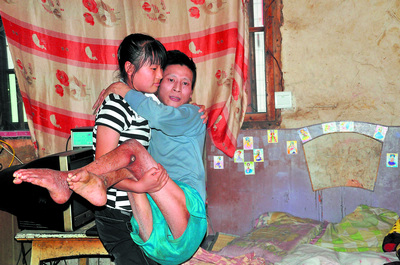 劉楨原本有個還算幸福的家庭,可在當年的一場礦難中,作為礦工的劉中心被壓斷了脊椎,腰椎受損,神經(jīng)受到破壞,從此落下了半身不遂,大小便失禁,生活不能自理。一年之后,其妻子因不能忍受貧寒改嫁他鄉(xiāng)。那一年劉楨才5歲,家庭所有的生活重擔(dān)全部壓在了她稚嫩的肩上。