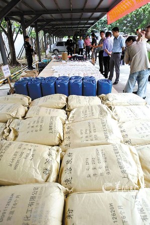 4月22日,東莞、廣州兩地警方聯(lián)合偵破了這起代號(hào)為“330A”特大武裝制毒販毒案,抓獲潘×斌等15人,搗毀制毒工場(chǎng)一個(gè),繳獲K粉、冰毒等毒品287公斤、制毒原料羥亞胺1噸多,查獲美制式手槍和仿“64式”手槍各1支,扣押毒資250萬余元,作案車輛4輛。