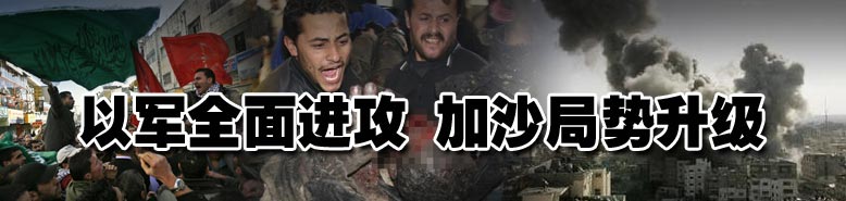第十三日 以軍8日對至少25個目標進行了打擊,并襲擊了巴勒斯坦武裝人員的5個分隊。同時,以軍還在停火時段內(nèi)襲擊了聯(lián)合國救援車隊,造成兩死一傷,遭到各方譴責。以色列軍方稱,當天有4枚來自黎巴嫩方向的火箭襲擊了以色列北部城鎮(zhèn)Nahariya,5人輕傷。黎巴嫩政府官員表示正調(diào)查此事。目前,軍事打擊已造成至少765名巴勒斯坦人死亡,超過3120人受傷,另外,以色列總理奧爾默特還暗示,攻勢可能擴大。【詳細】